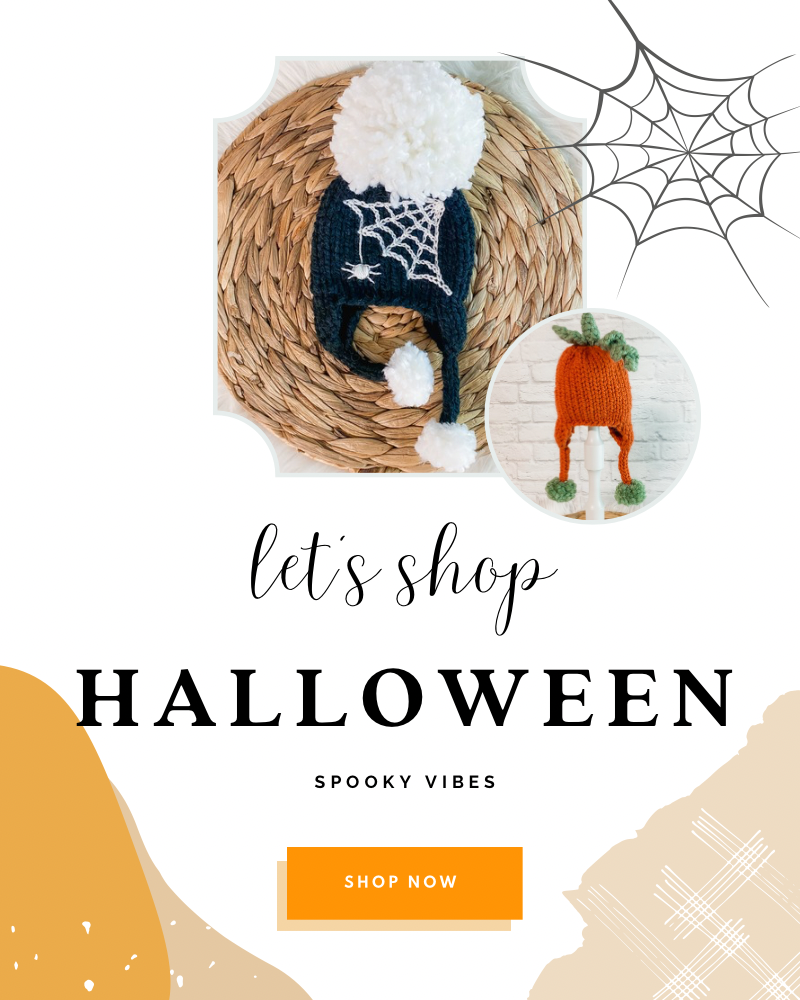 Glow in the Dark Knitted Baby Spiderweb Hat with Pom Poms - Handmade Halloween Baby Beanie