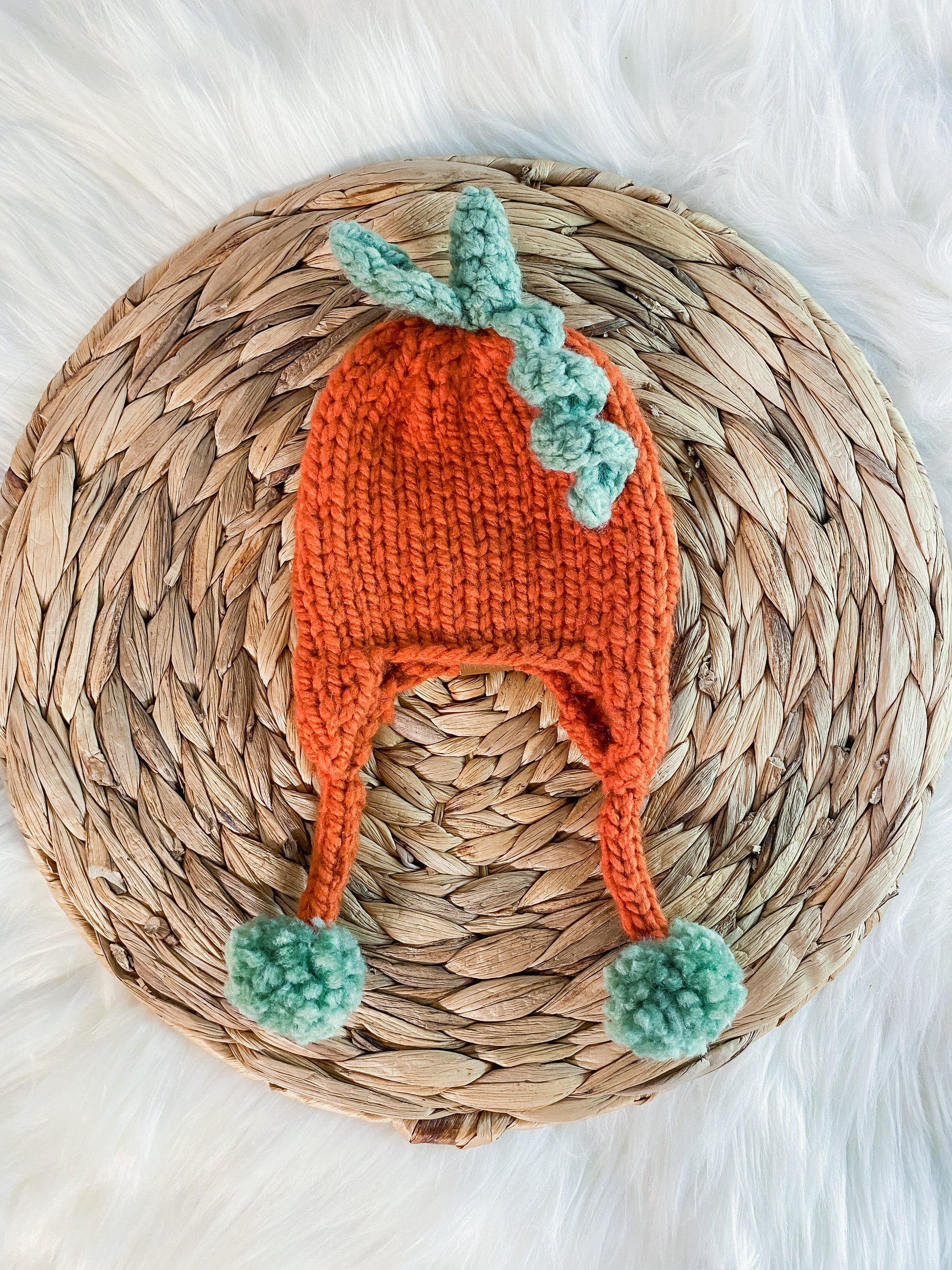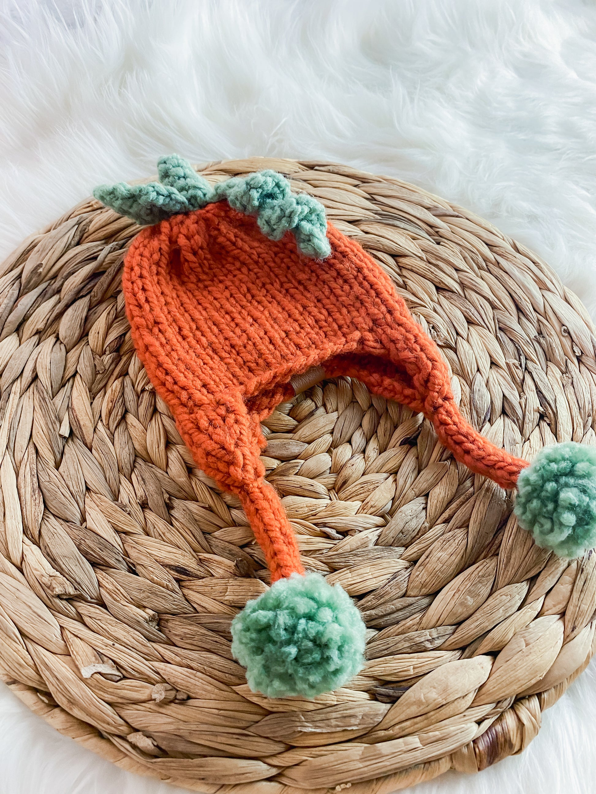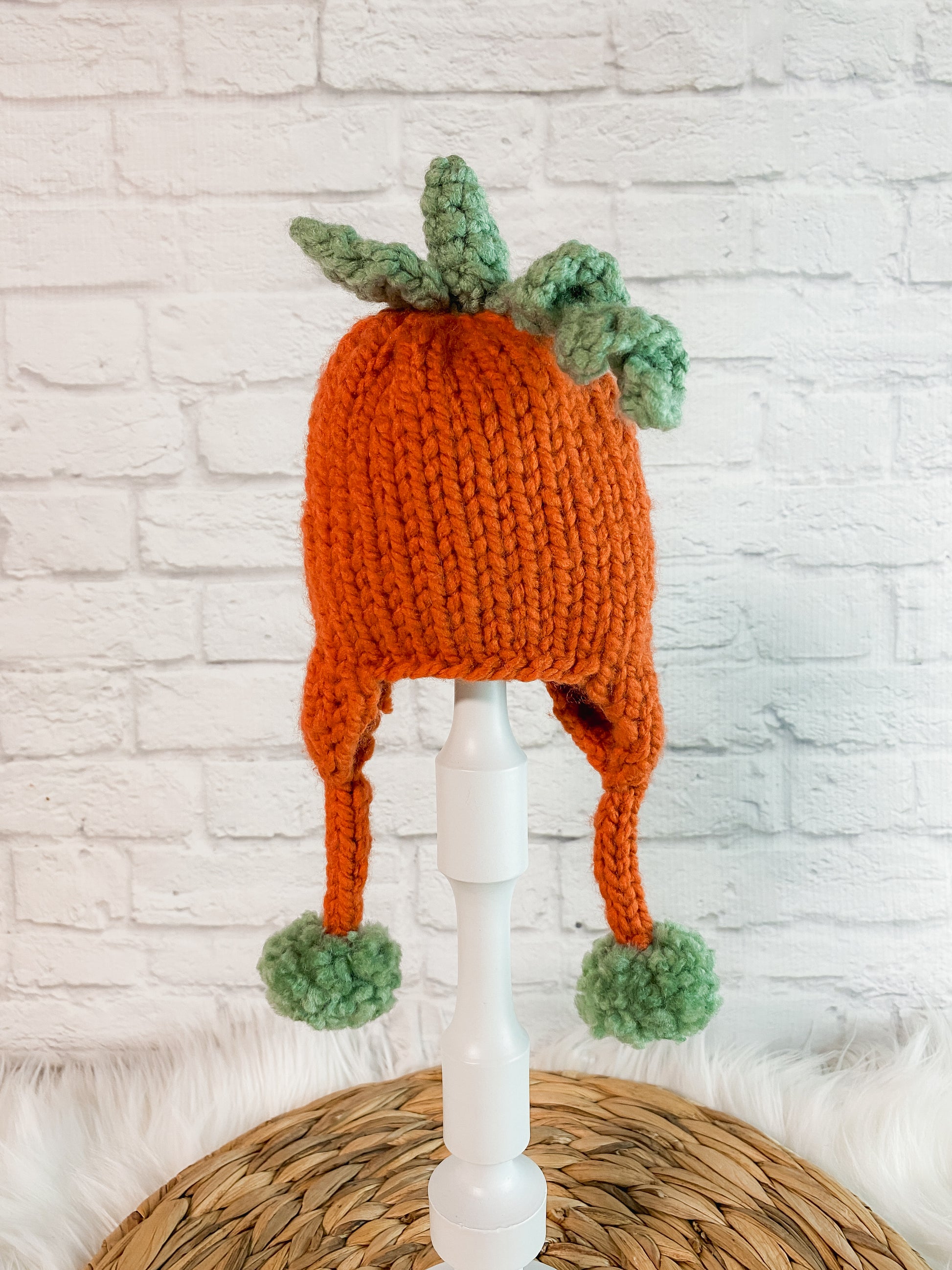 Pumpkin Baby Hat - Handmade Knitted Newborn Beanie with Earflaps - Baby Fall and Halloween Accessory
