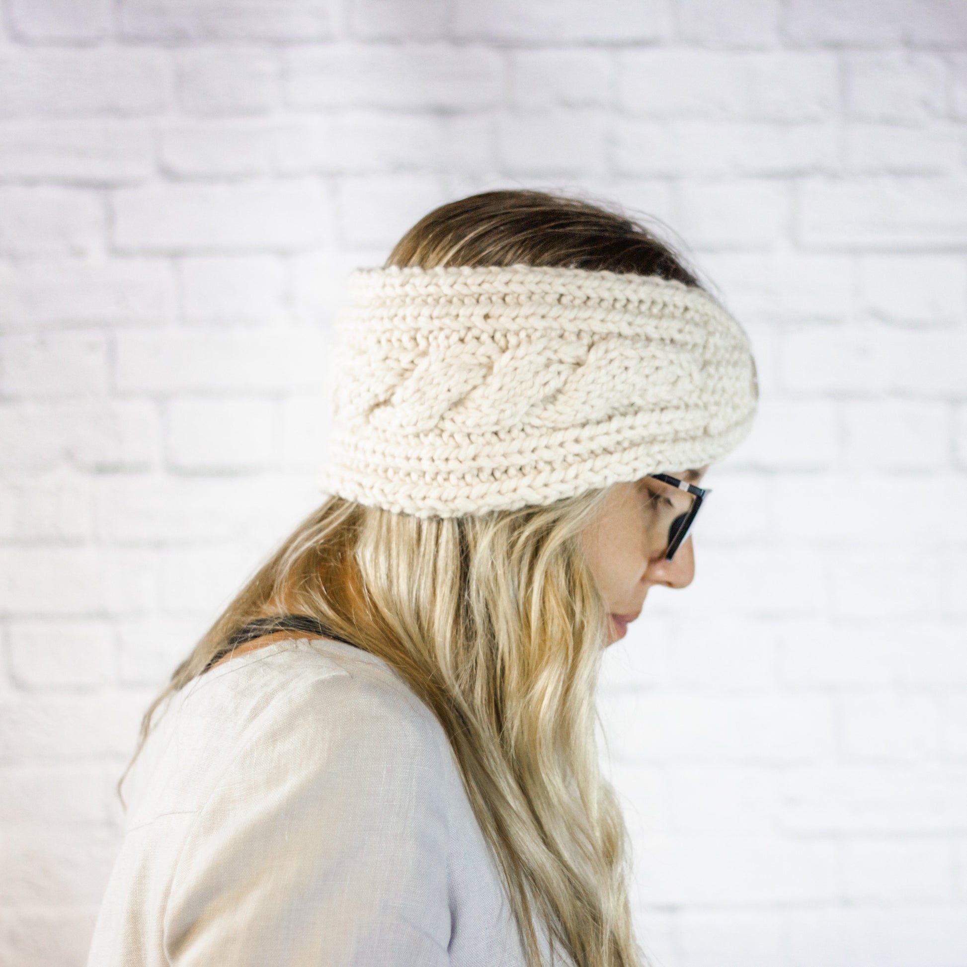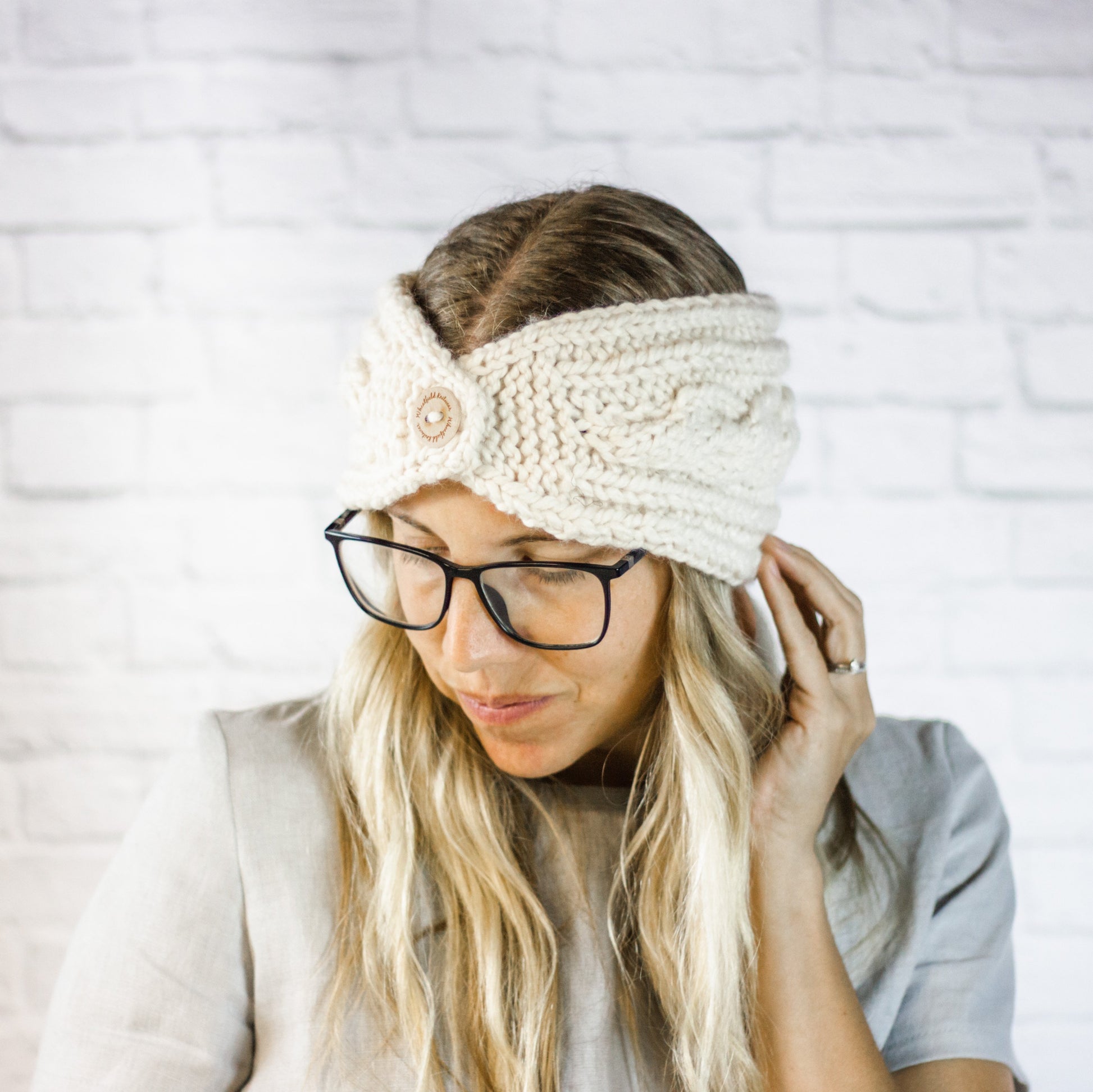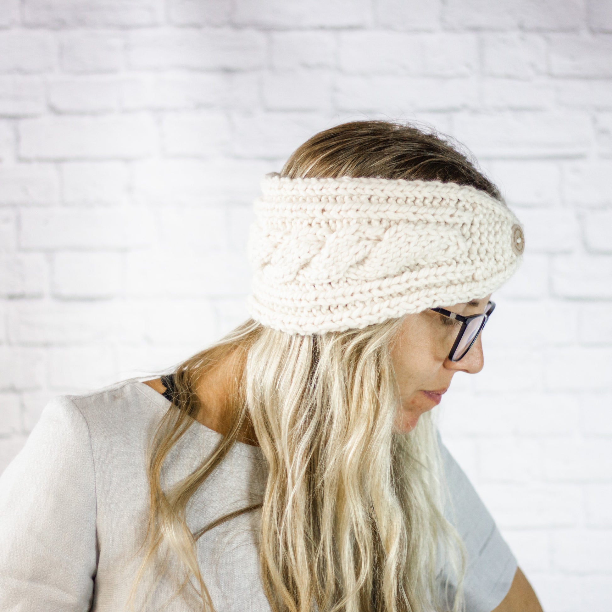 Cream Extra Wide Cable Knit Headband, Chunky Knit Winter Headband with Button