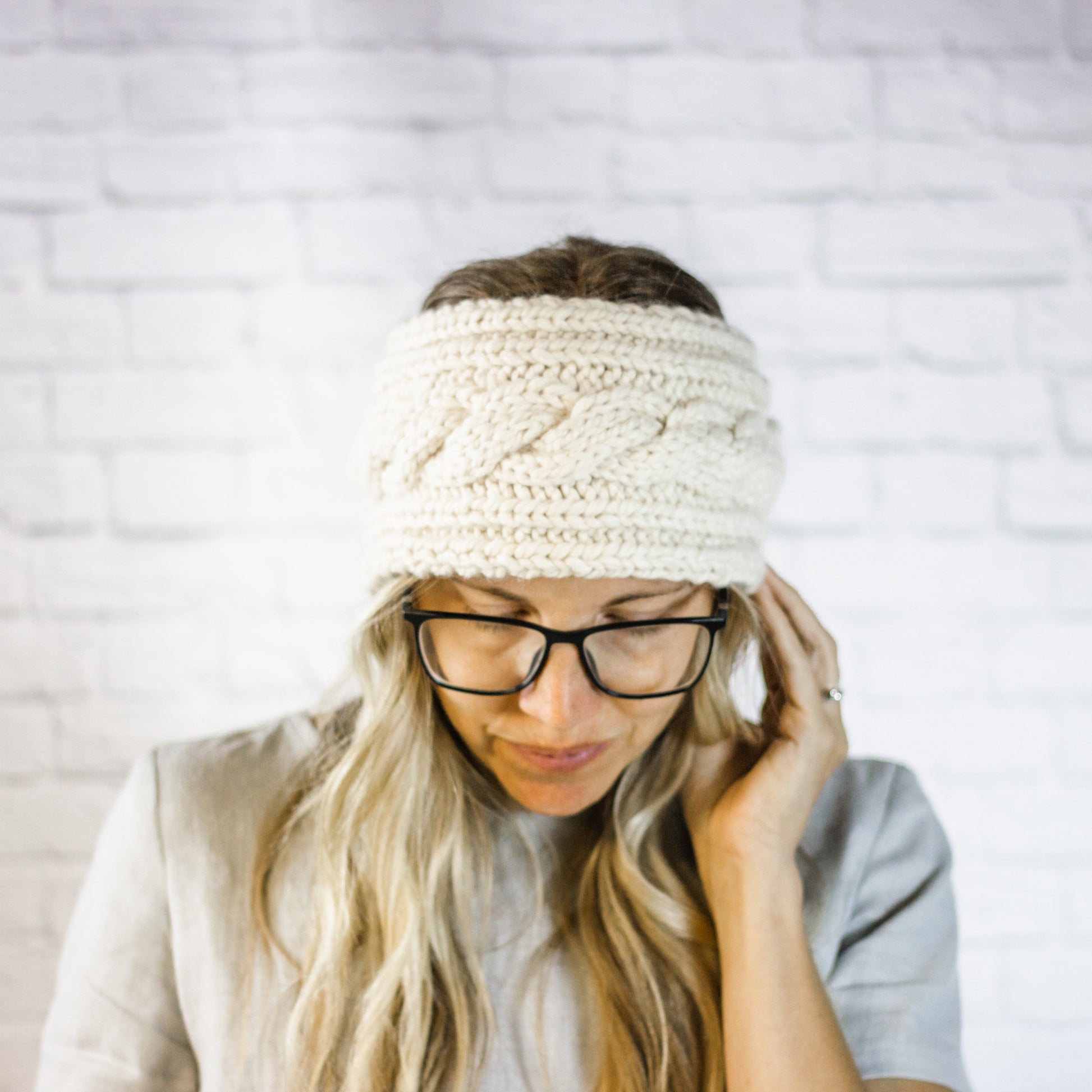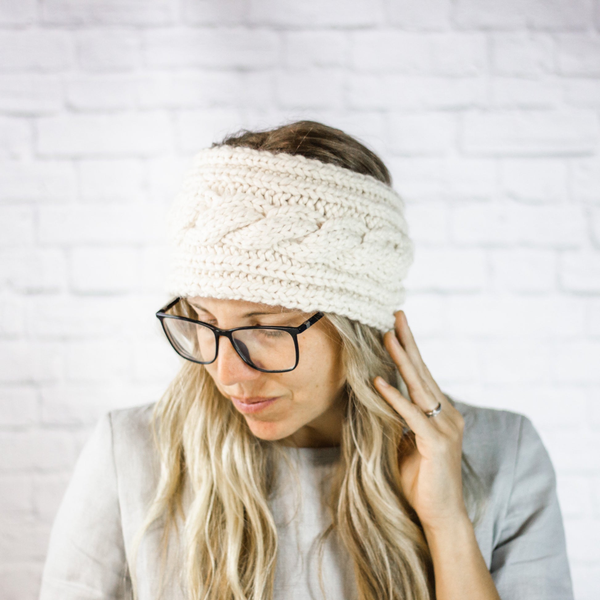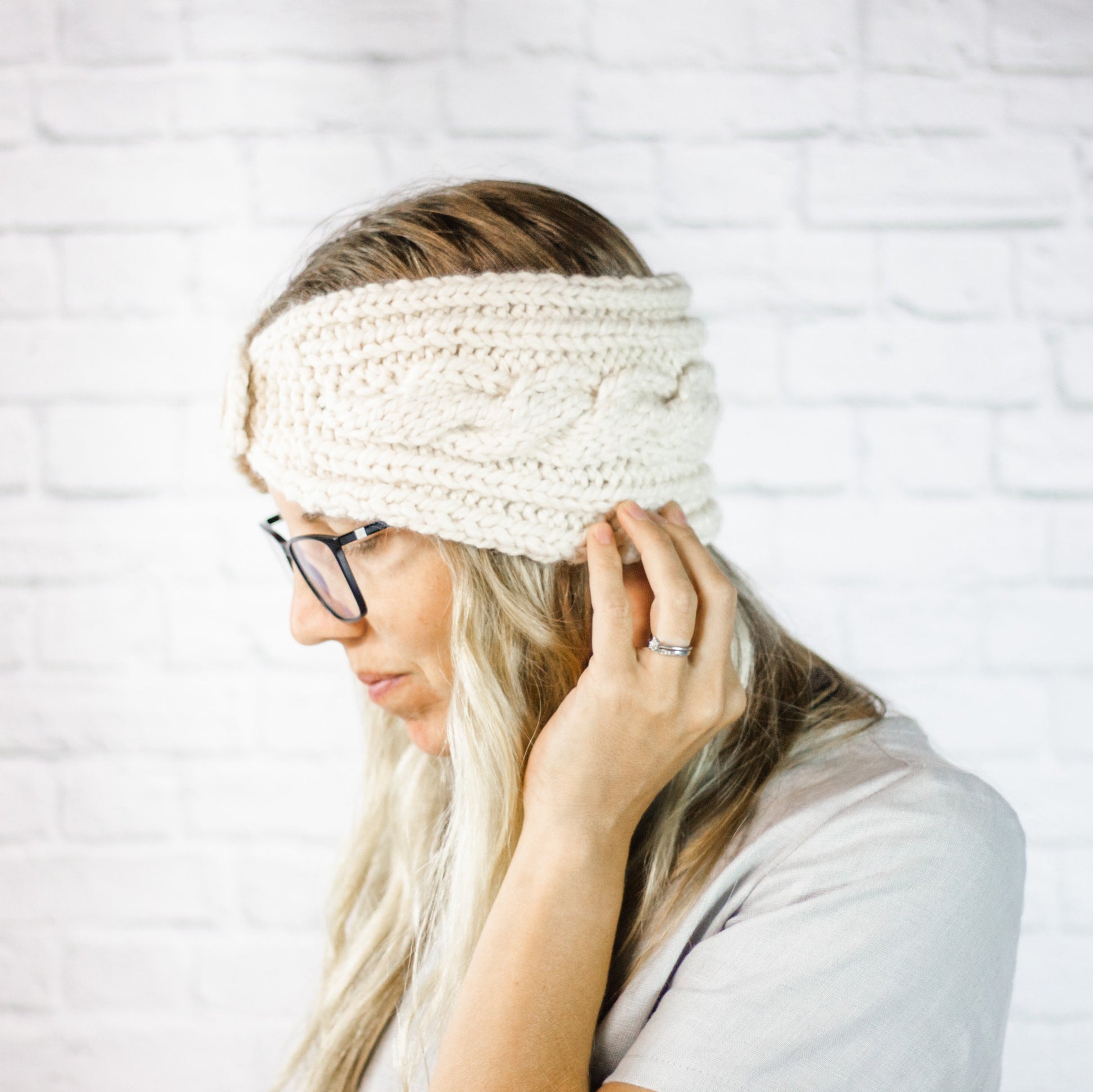 Cream Extra Wide Cable Knit Headband, Chunky Knit Winter Headband with Button